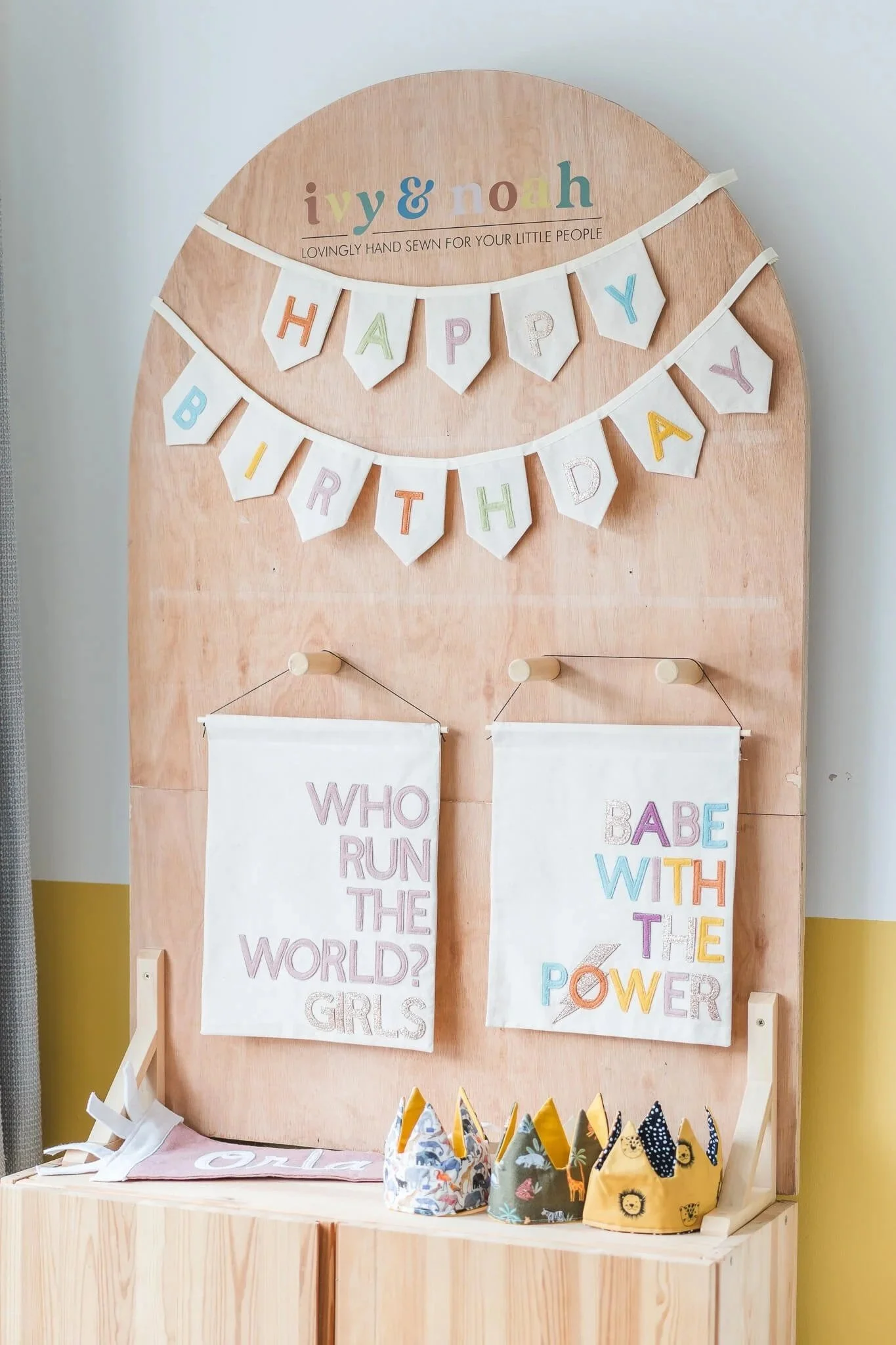 Beautifully handmade and personalised, Ivy and Noah birthday bunting is designed to make little birthdays feel extra special.